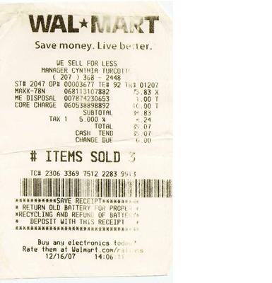 Walmart Car Battery Receipt
